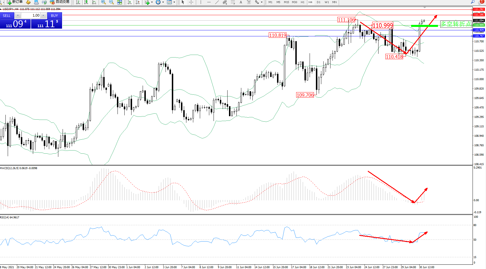 多空转折点:110.999