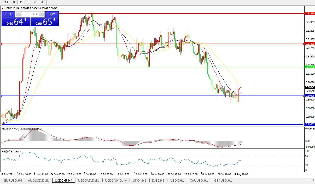 美元兑瑞郎USDCHF 4小时图:
