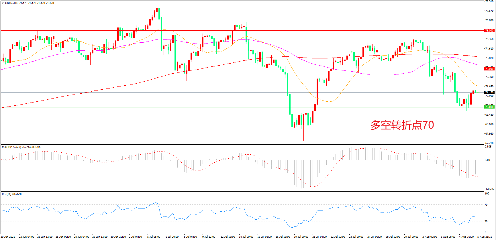 备选策略: 在70.00之上看涨,目标73.00 76.00