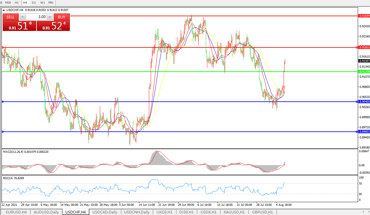 美元兑瑞郎USDCHF 4小时图: