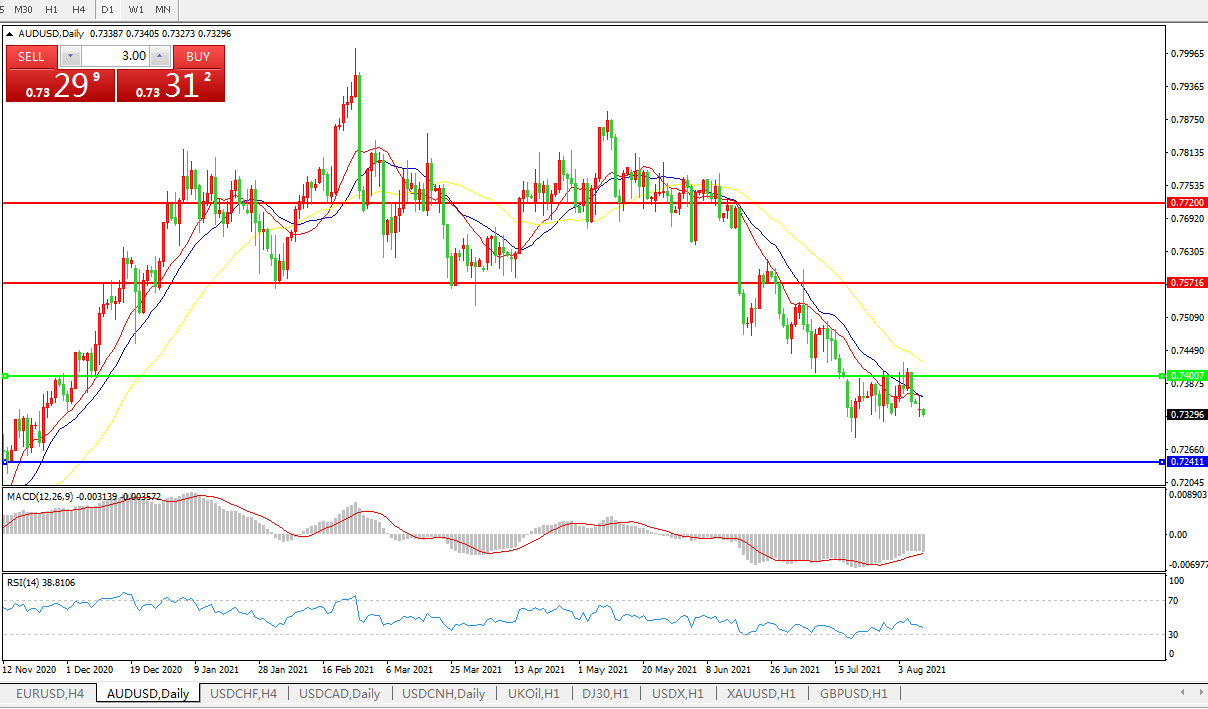 交易策略:0.7400下方看跌,目标0.7240、0.7080
