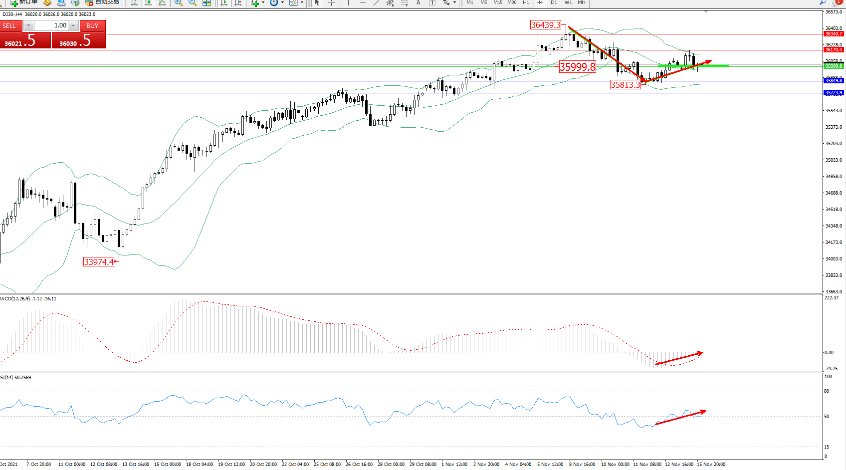 技术点评:低位多头动力维持整理上移至布林带指标上轨29836位置附近短暂遇阻整理,多头动力依旧有继续上移迹象,布林带指标呈张口走势后开始有持续上移迹象,前期高位29946位置近在咫尺破位在即,MACD指标处于0轴线上方多头区域维持整理平移,RSI指标处于50均衡线上方多头区域持续徘徊中;