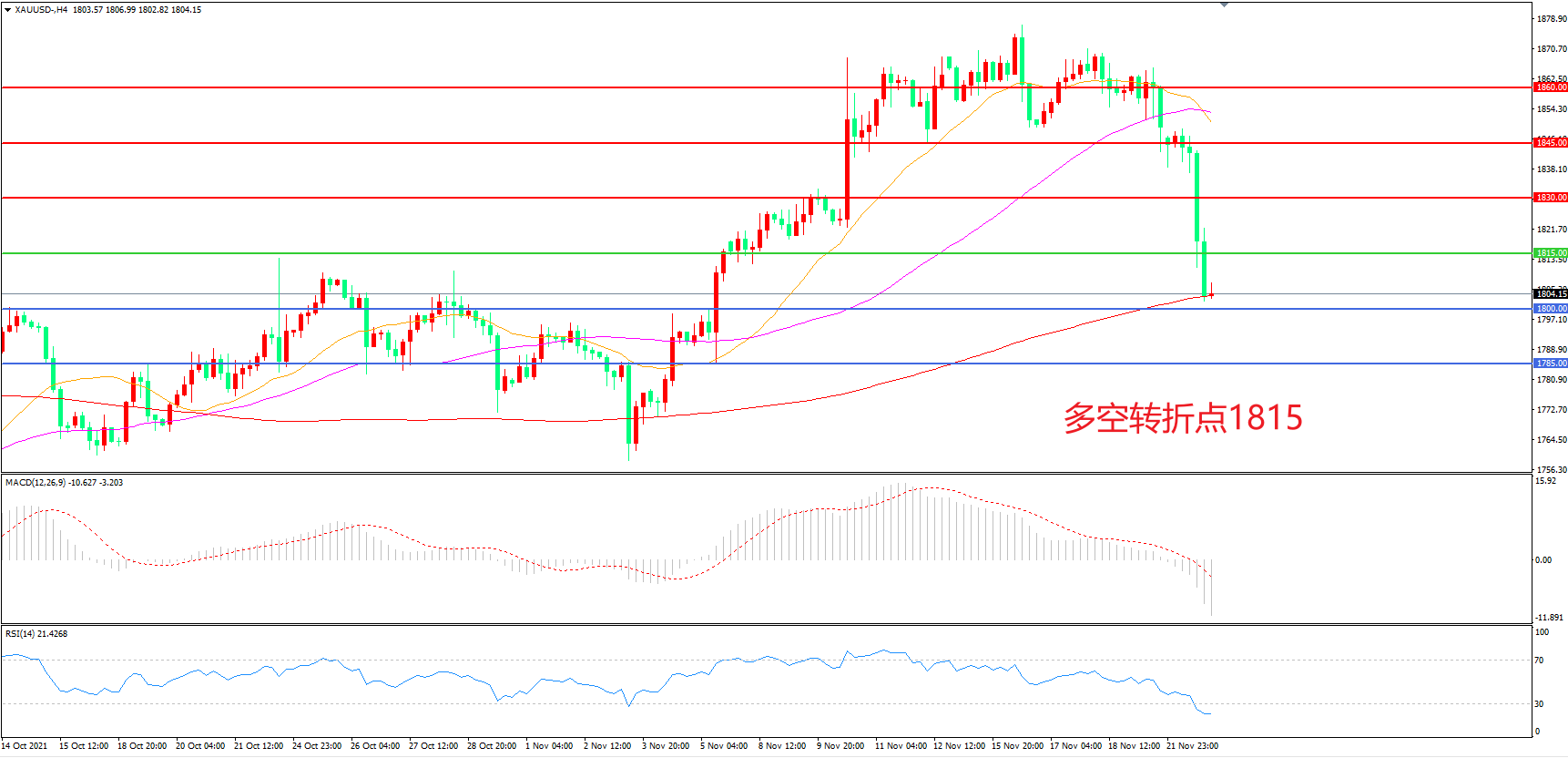 多空转折点:1815.00