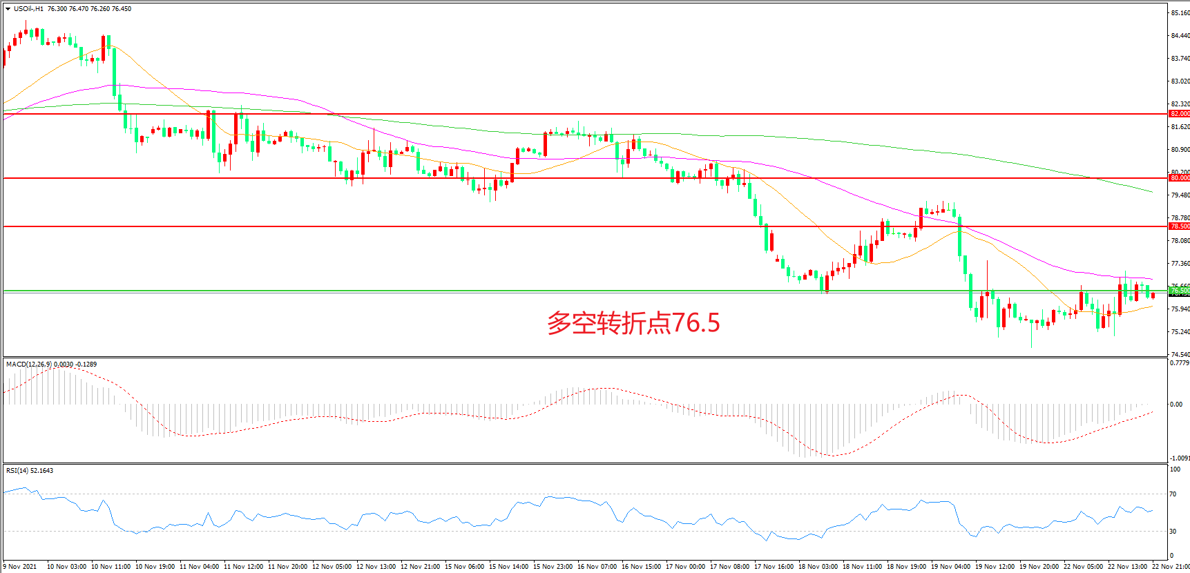 多空转折点:76.50