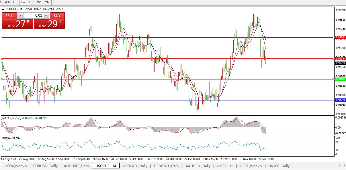 美元兑瑞郎USDCHF 4小时图: