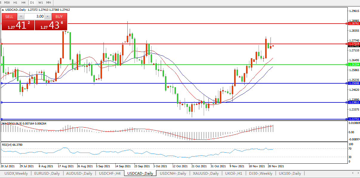 美元兑加元USDCAD    日线图: