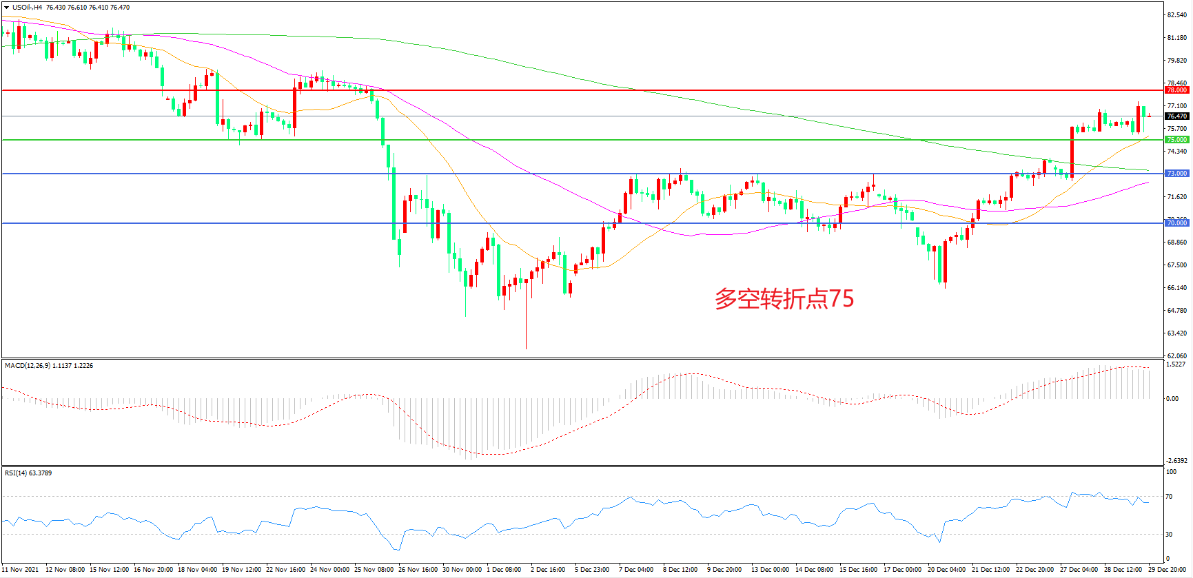 交易策略:在75.00之上看涨,目标78.00 80.00