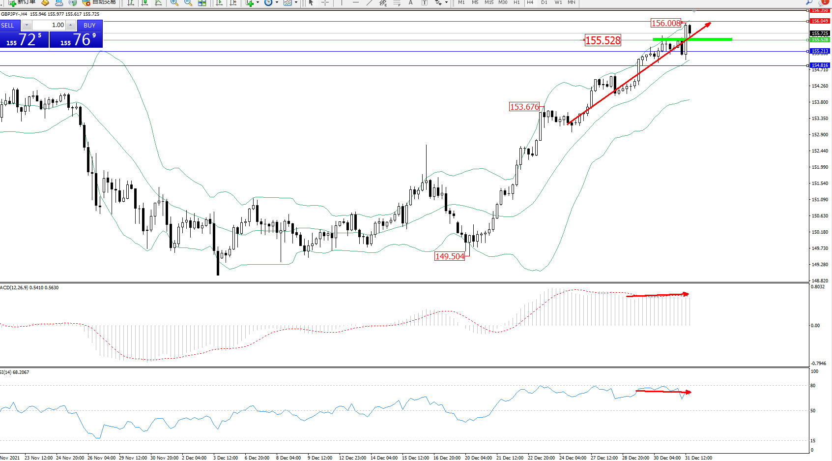 交易策略:155.528上方看涨,目标156.049、156.350