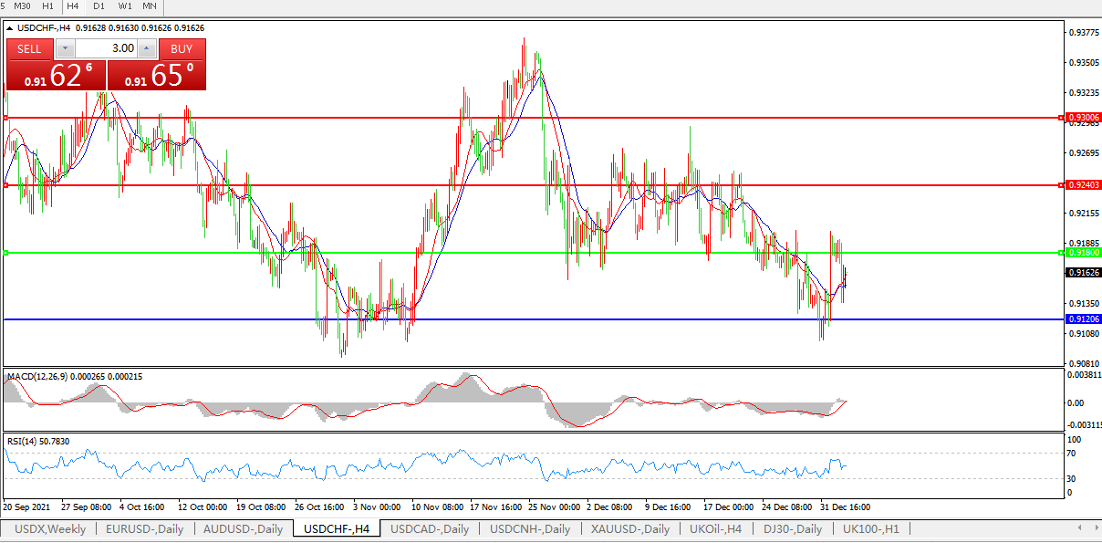 交易策略:0.9180上方看涨,目标0.9270、0.9370