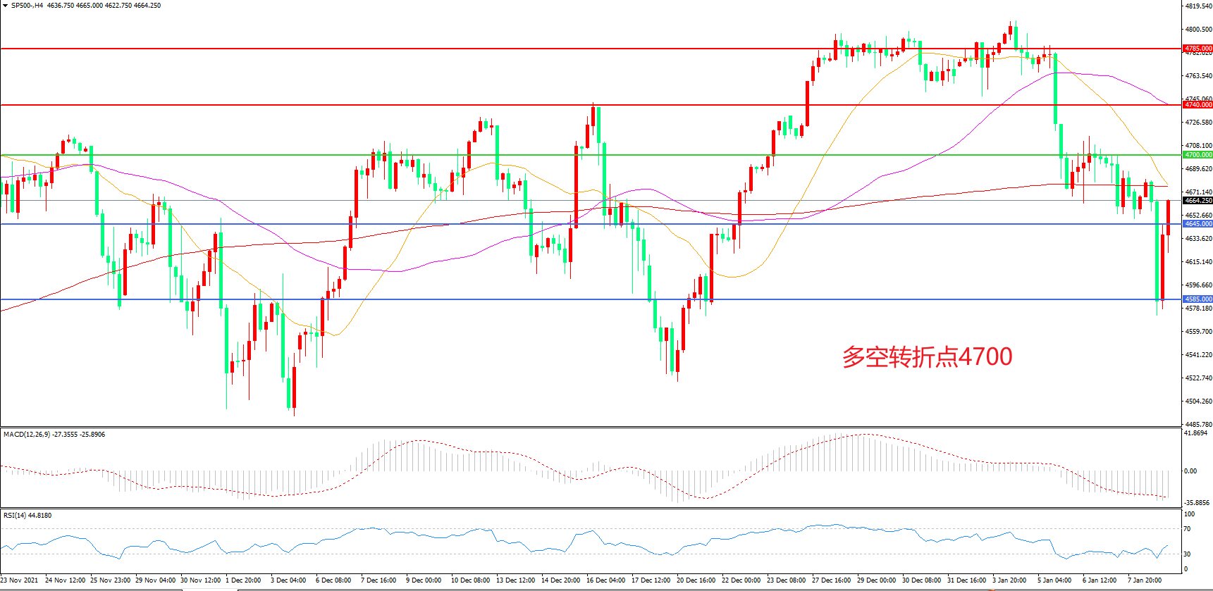 交易策略:在4700.00之下看跌,目标4645.00    4585.00