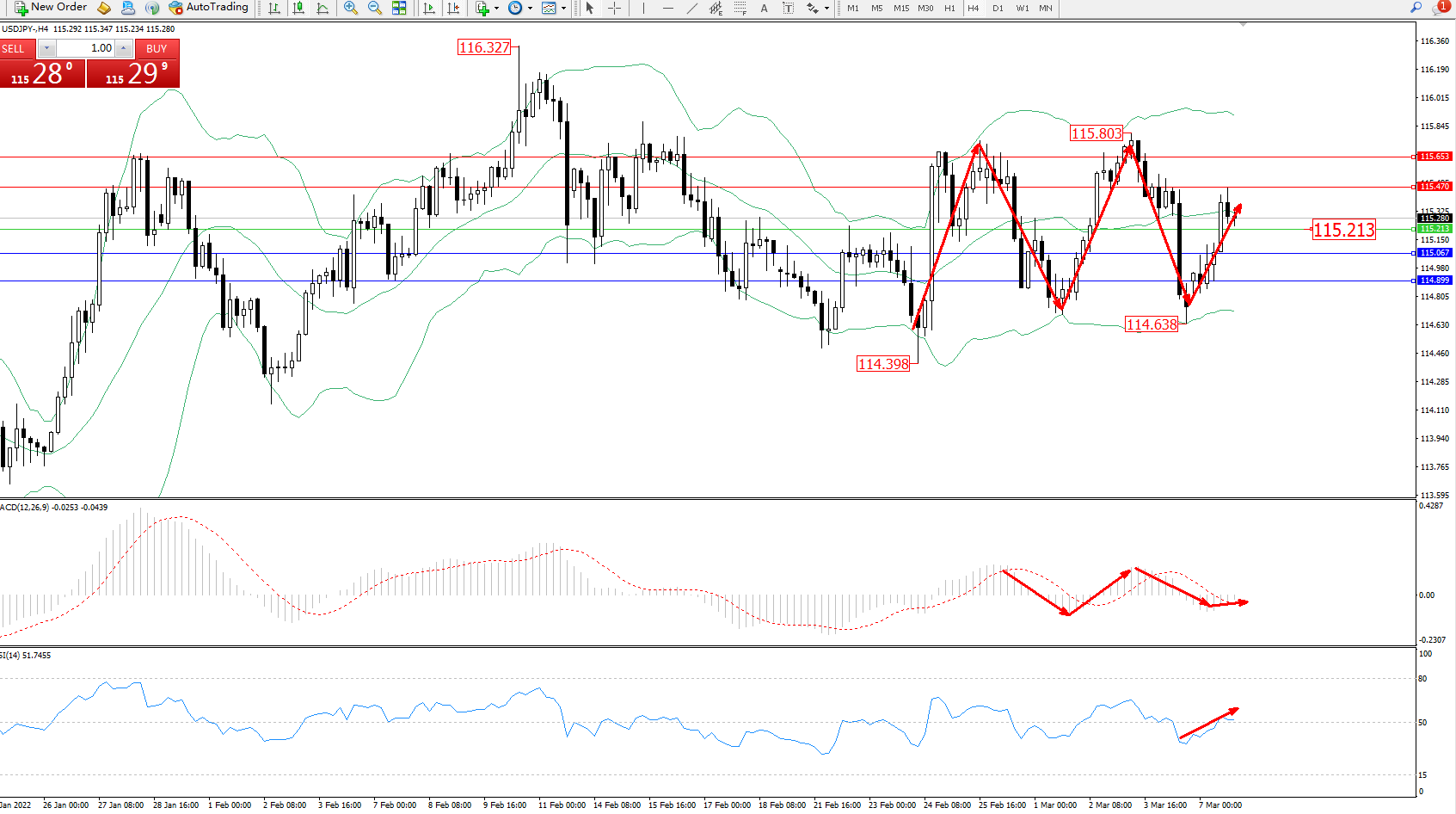 交易策略:115.213上方看涨,目标115.470、115.653