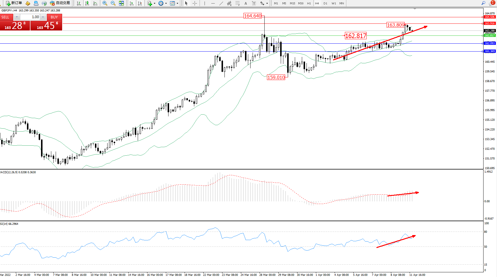 交易策略:162.817上方看涨,目标163.916、164.506