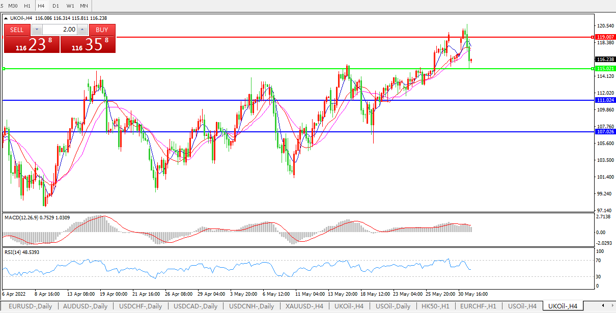 英国原油UKOIL 4小时图