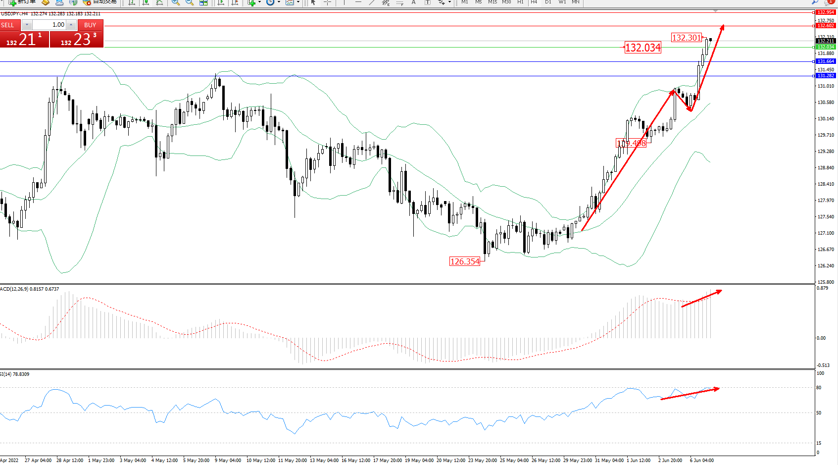 交易策略:132.034上方看涨,目标132.602、132.954