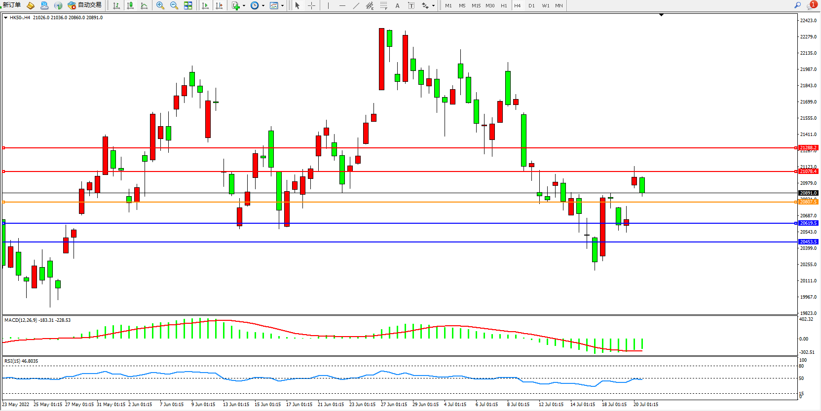恒指HK50 4小时图