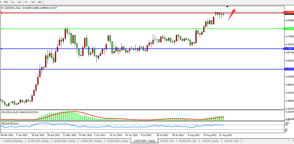 美元人民币USDCNH 日线图: