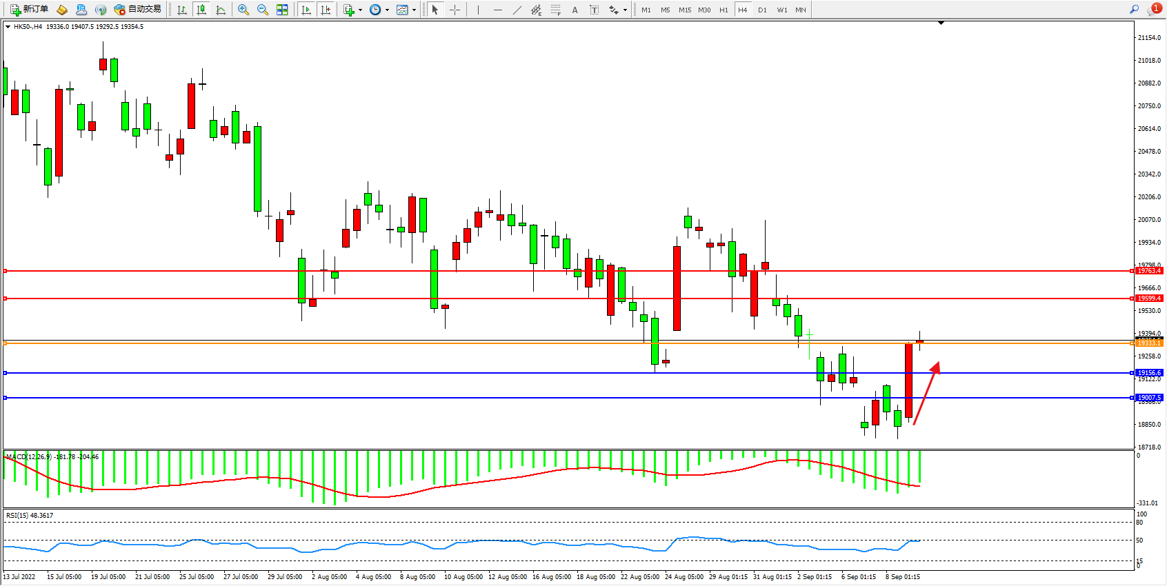 恒指HK50 4小时图