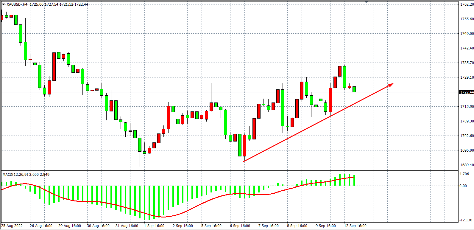 周一(9月12日)风险资产继续于CPI数据前走强,美指大幅跳水,为连续第四个交易日收跌,现货黄金冲高回落,在美盘涨至1735.03的日高后回吐此前大部分涨幅,并跌破1730美元关口,最终收涨0.43%。今日将公布美国CPI数据,作为美联储加息的风向标,通胀的数据水平至关重要,日内应重点关注。
