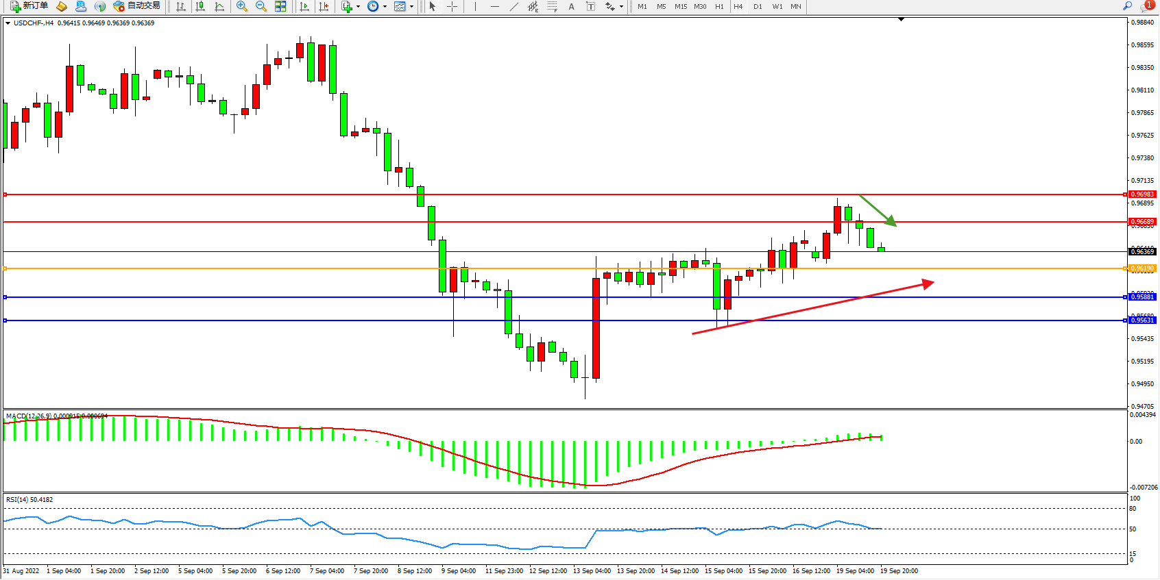 备选策略:0.96190上方看涨,目标0.96689、0.96983