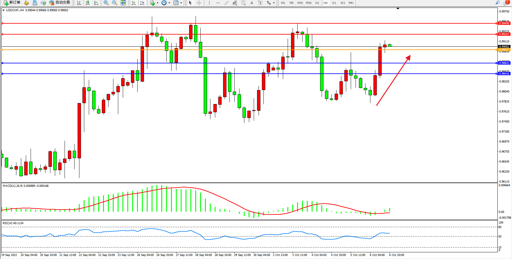 美元瑞郎USDCHF——4小时K线图显示: