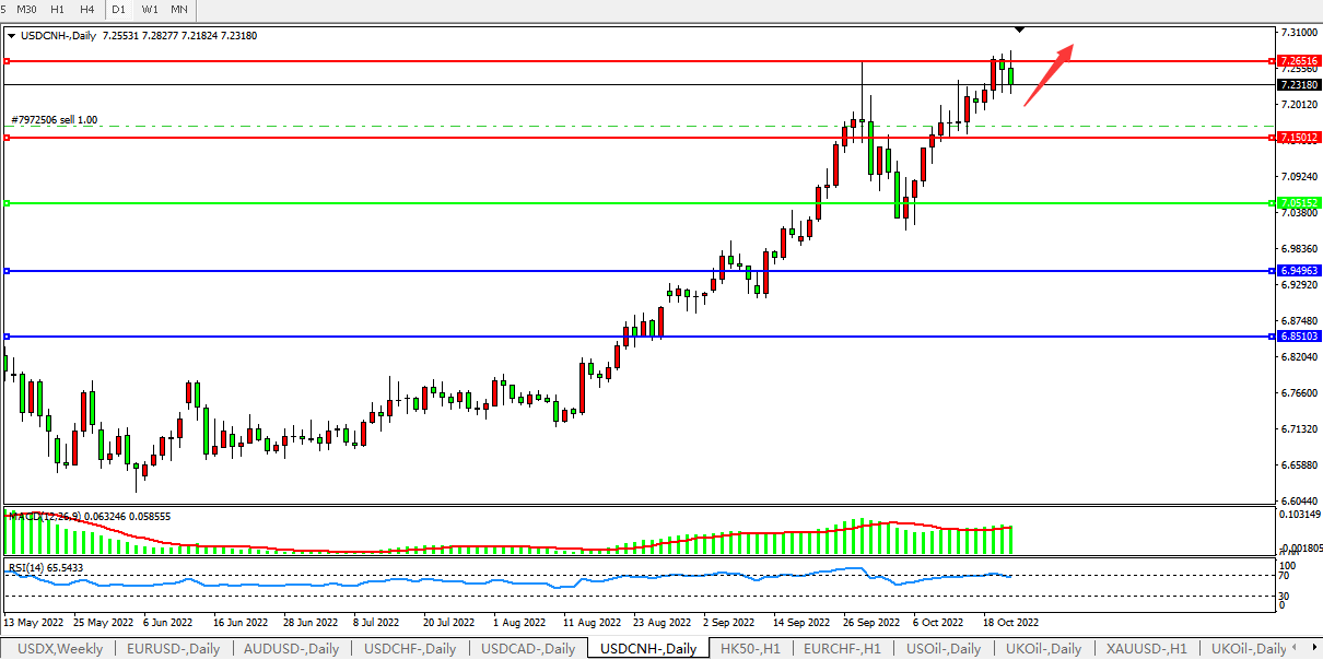 美元人民币USDCNH 日线图: