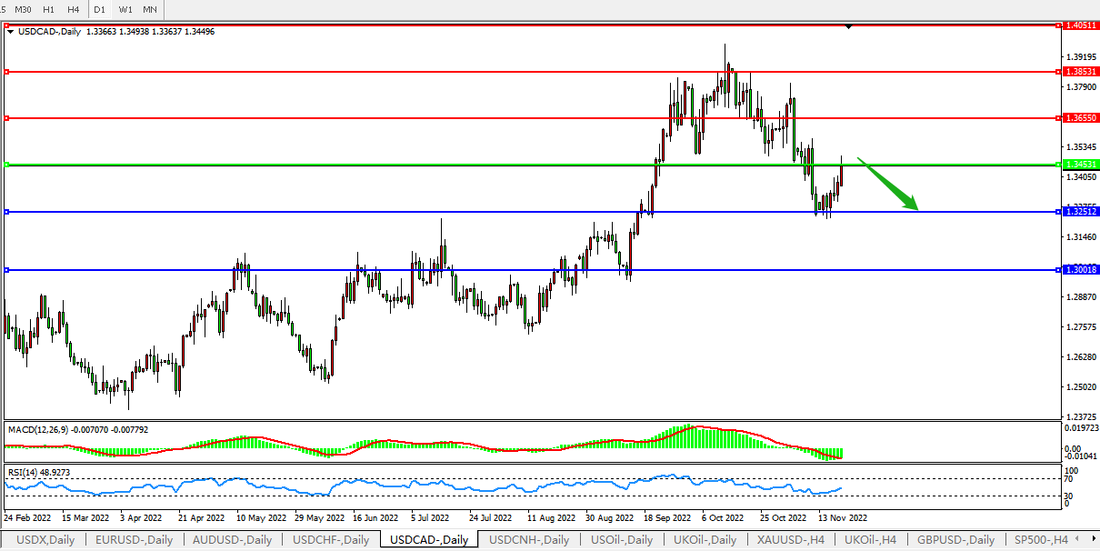 美元兑加元USDCAD 日线图: