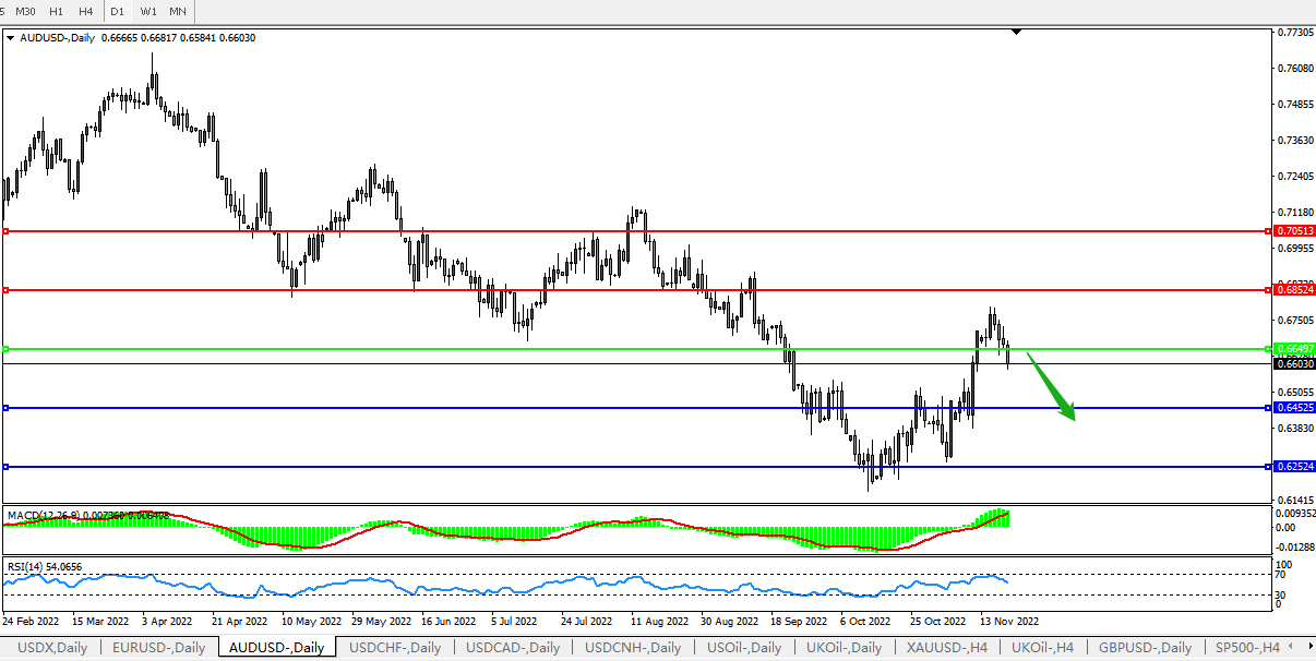 交易策略:0.6650下方看跌,目标0.6450、0.6250