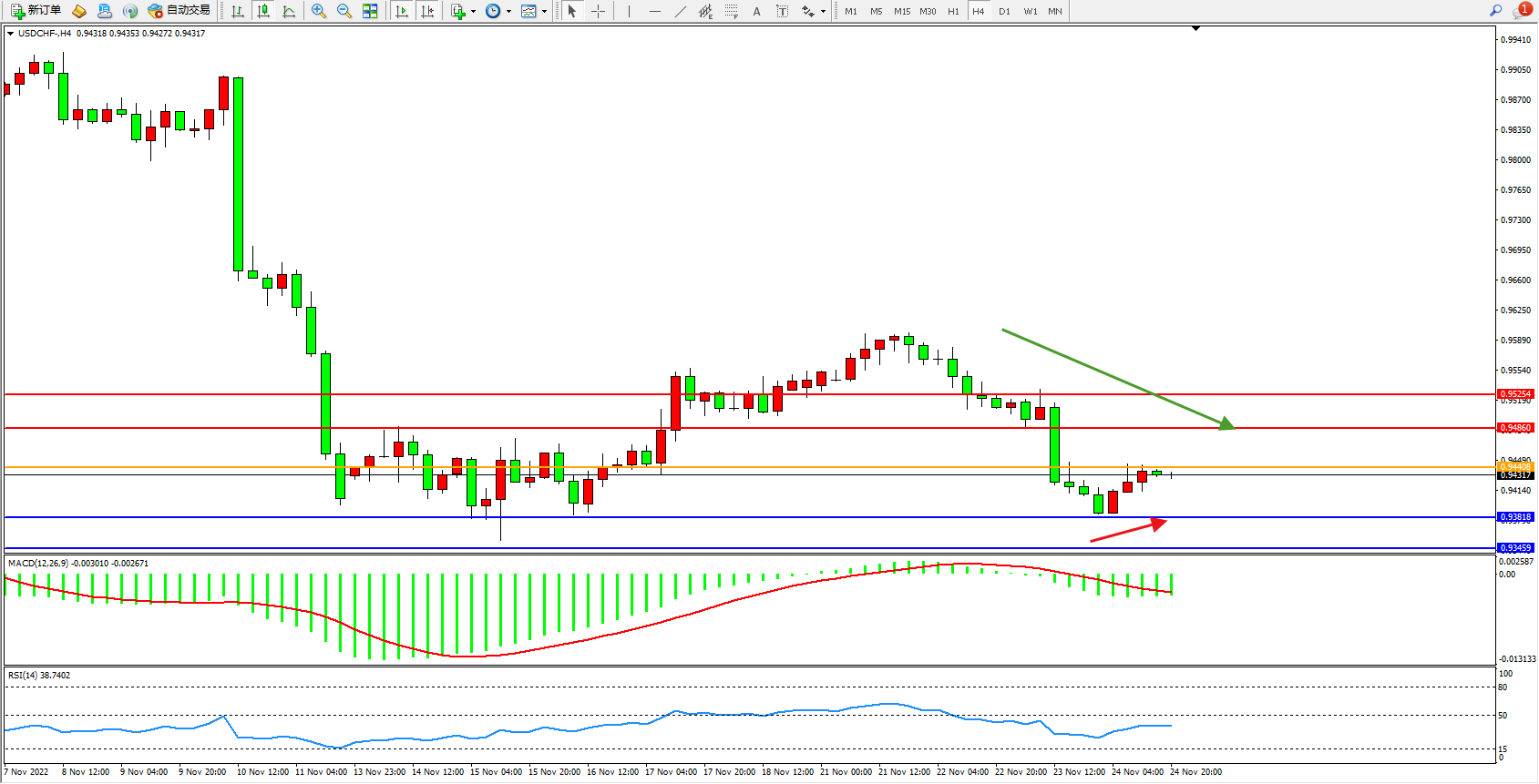 美元瑞郎USDCHF——4小时K线图显示: