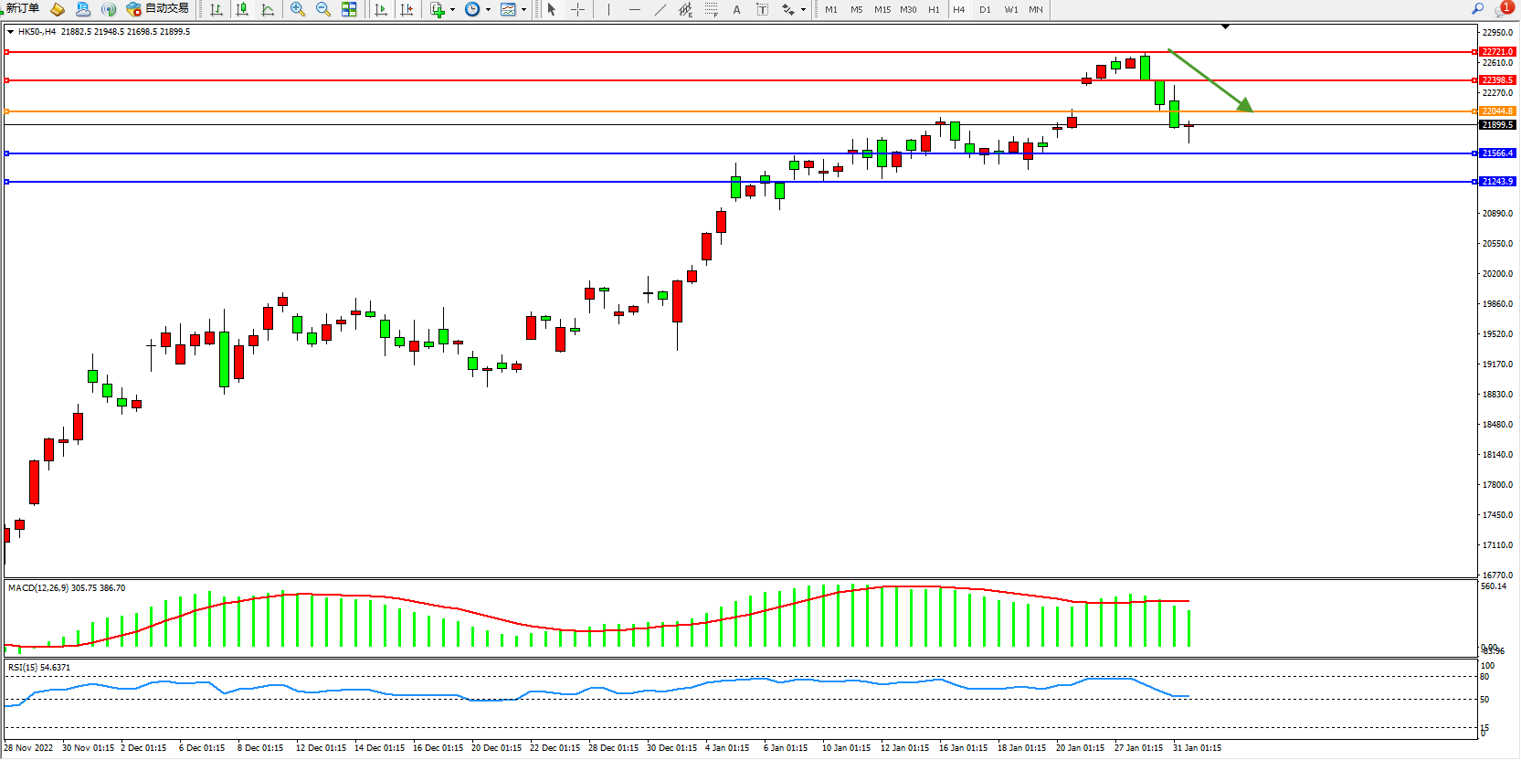 恒指HK50 4小时图