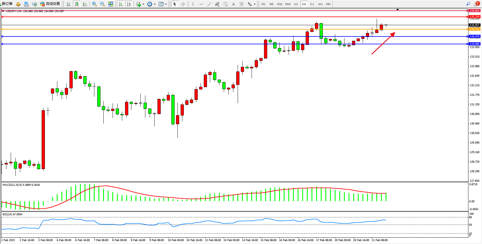 交易策略:134.992上方看涨,目标135.319、135.603