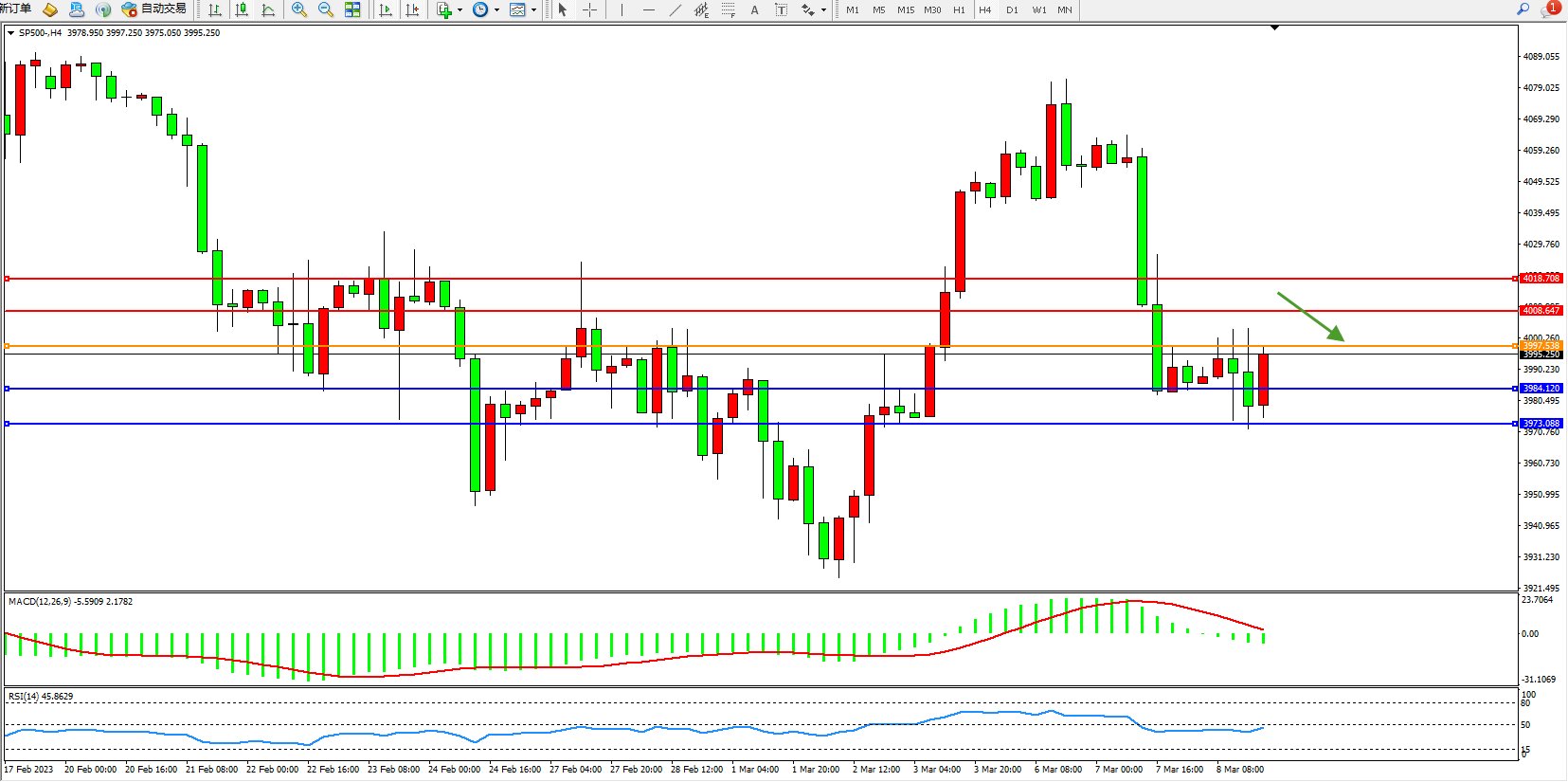 标普SP500——4小时K线图显示: