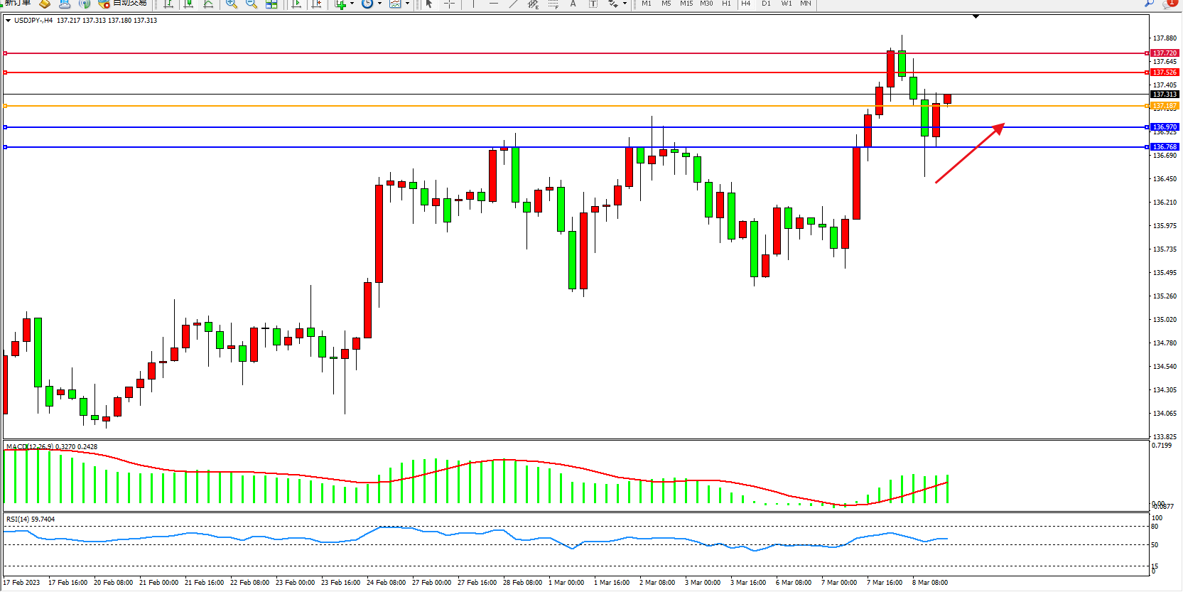 阻力位:137.526 137.720