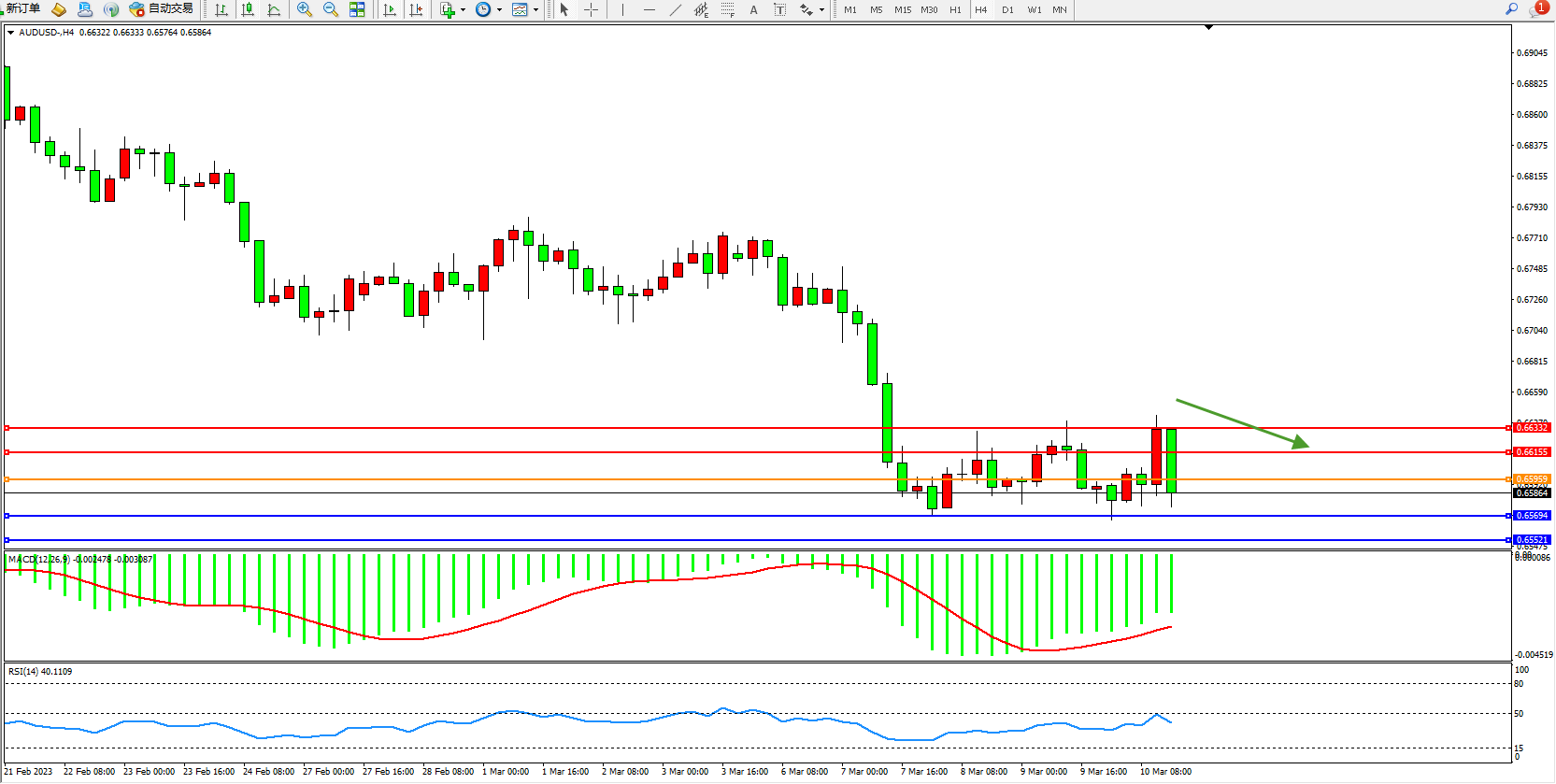 4小时图看:低位短期窄幅震荡,市场整体维持低位宽幅走势,短期尚未有走出弱势迹象,MACD指标处于空头区域维持整理上移,RSI指标处于50均衡线下侧徘徊;