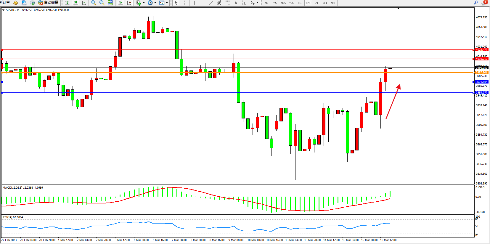 标普SP500——4小时K线图显示: