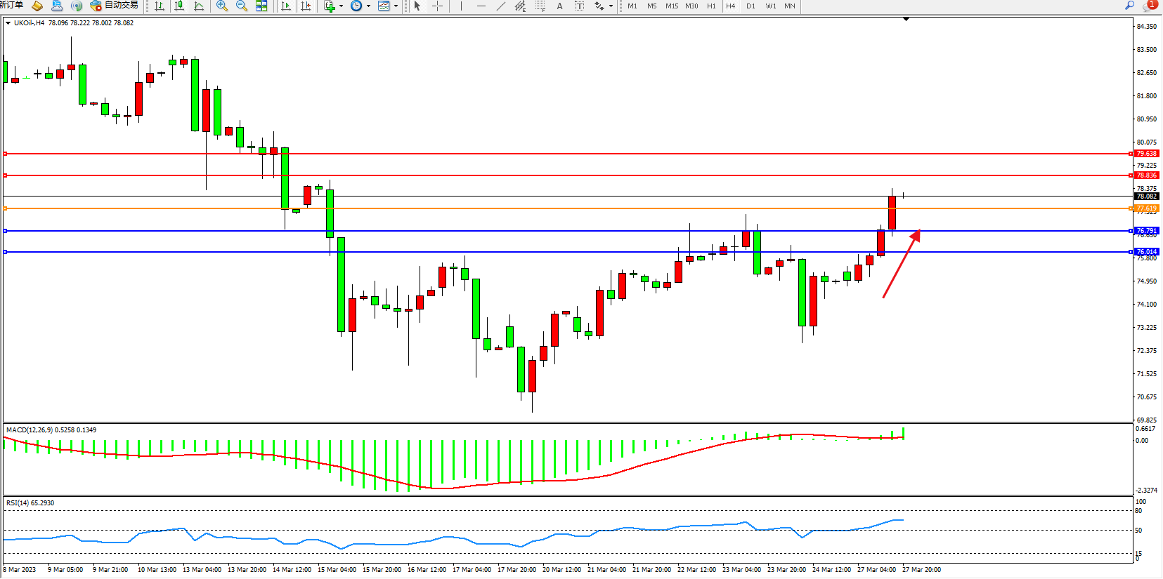 布油UKOil——4小时K线图显示: