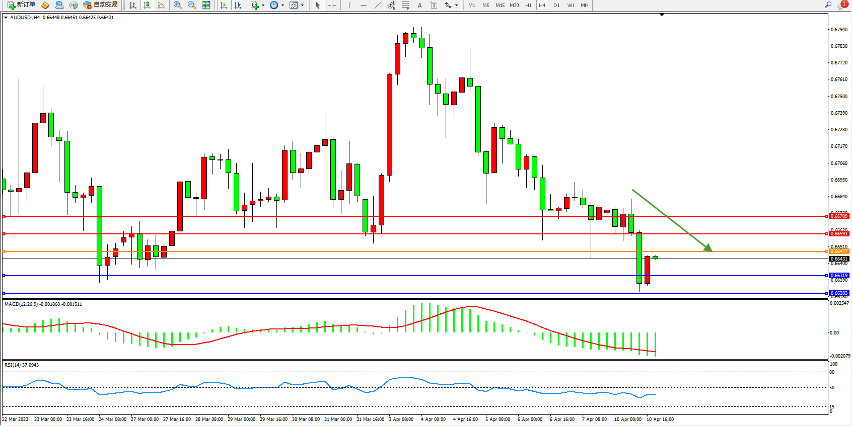 交易策略:0.66477下方看跌,目标0.66593 0.66709