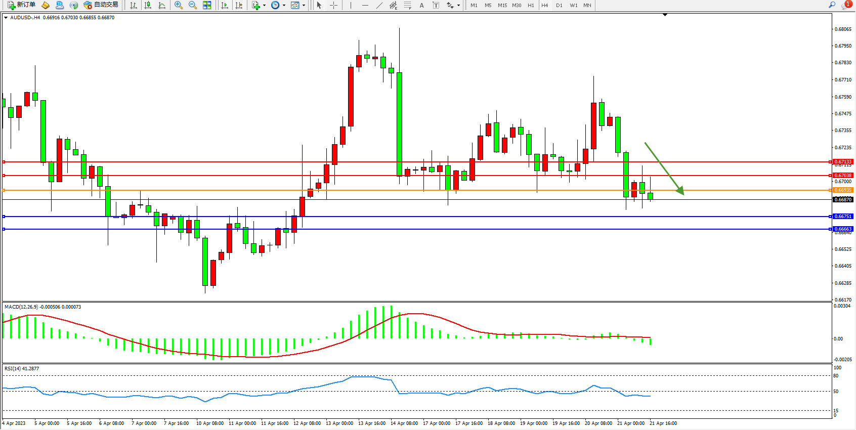 交易策略:0.66935下方看跌,目标0.66751 0.66663