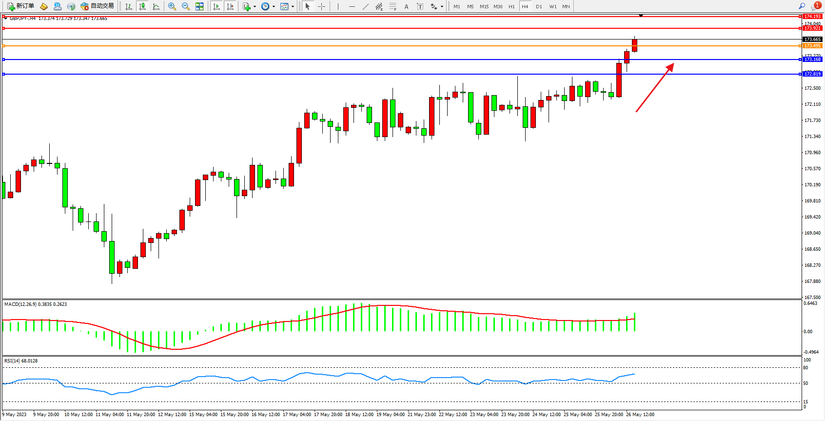 阻力位:173.921 174.193