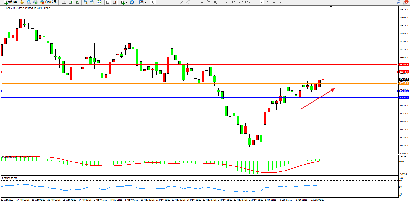 恒指HK50 4小时图