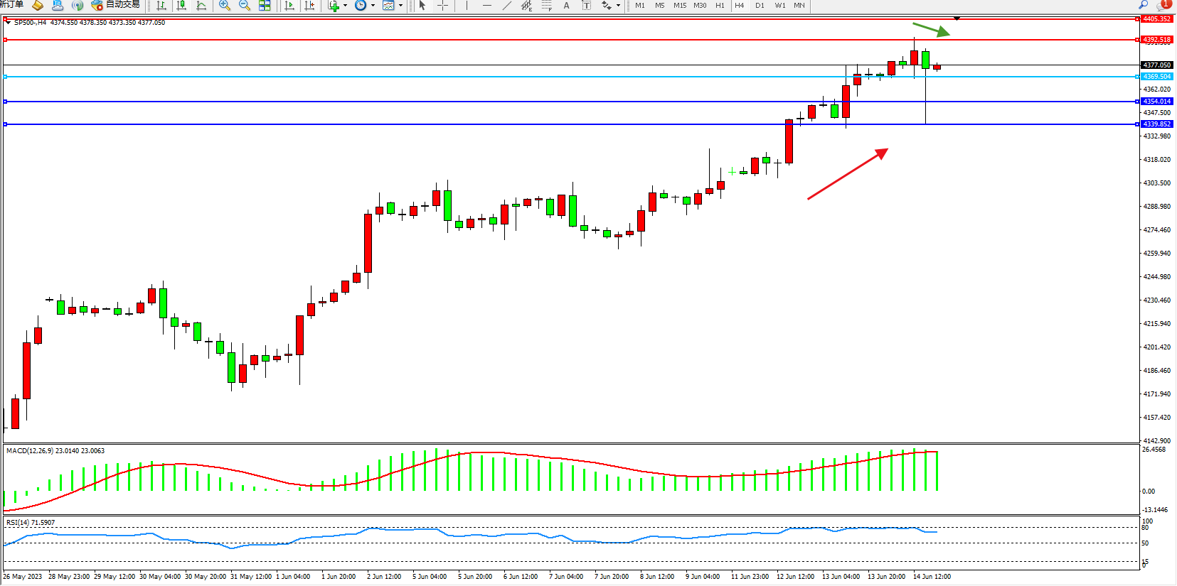 标普SP500——4小时K线图显示: