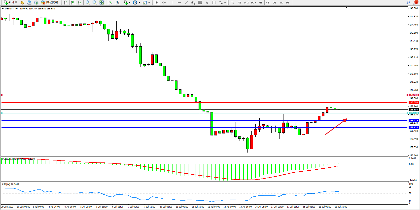 交易策略:139.449上方看涨,目标140.050 140.469
