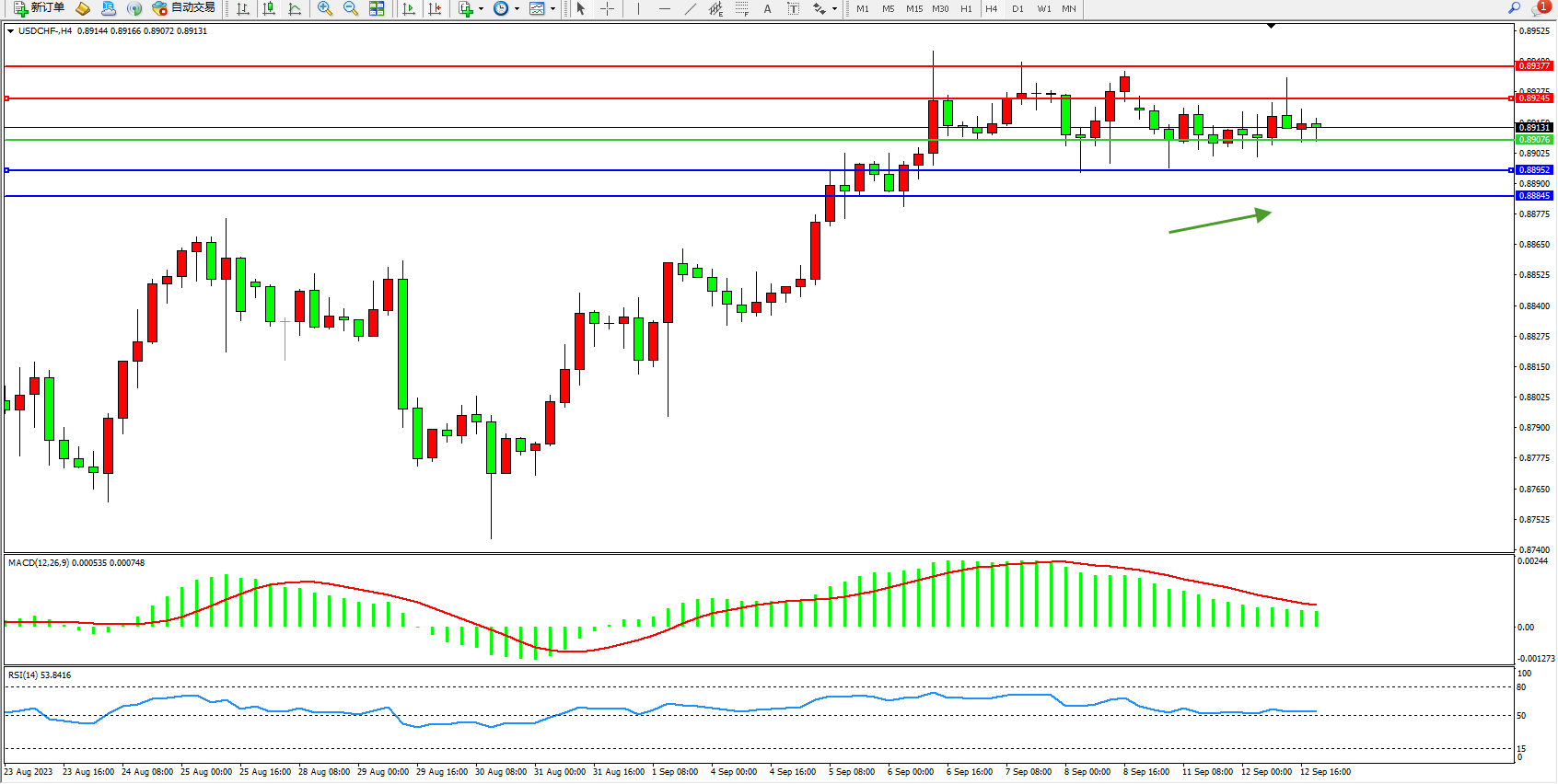 交易策略:0.89076上方看涨,目标0.89245 0.89377