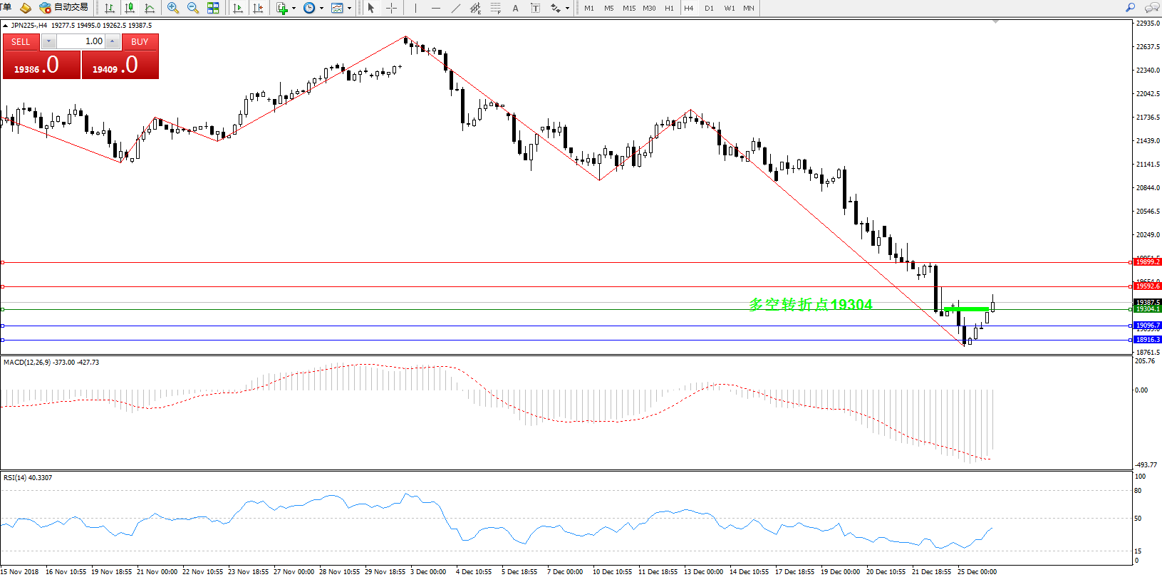 日经JPN225——4小时K线图显示: