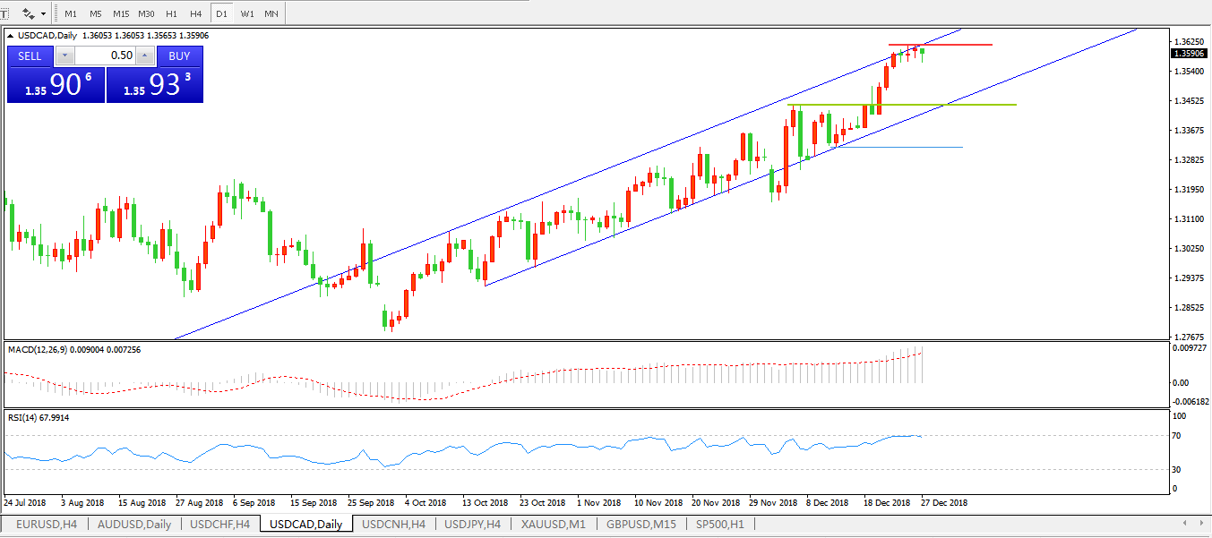 美元兑加元USDCAD日线