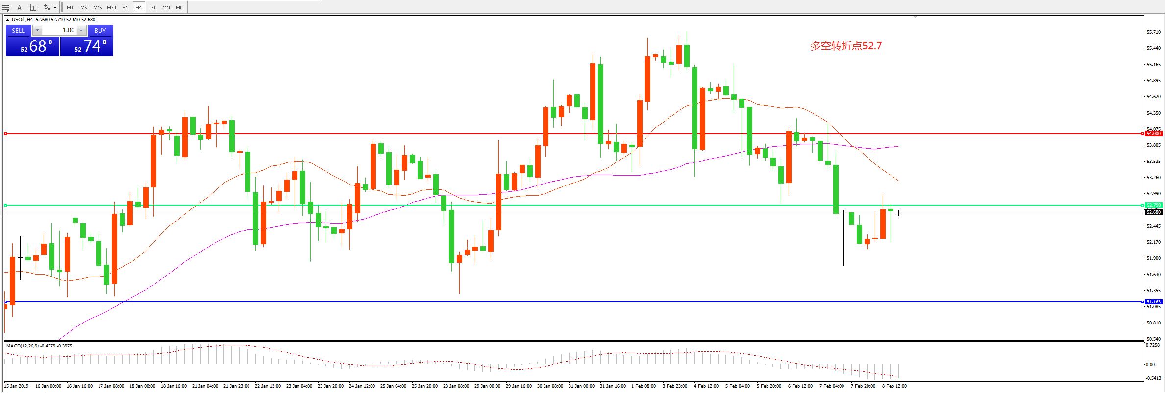交易策略:在52.70之下看跌,目标51.00  49.00