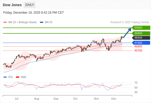 Dow Jones 短线: 看涨。