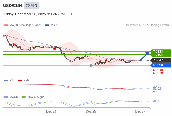 替代方案: 在6.9998以下,期待6.9948和6.9919。