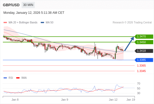 在 1.3385 之上,看涨,目标价位为 1.3450 ,然后为 1.3470 。