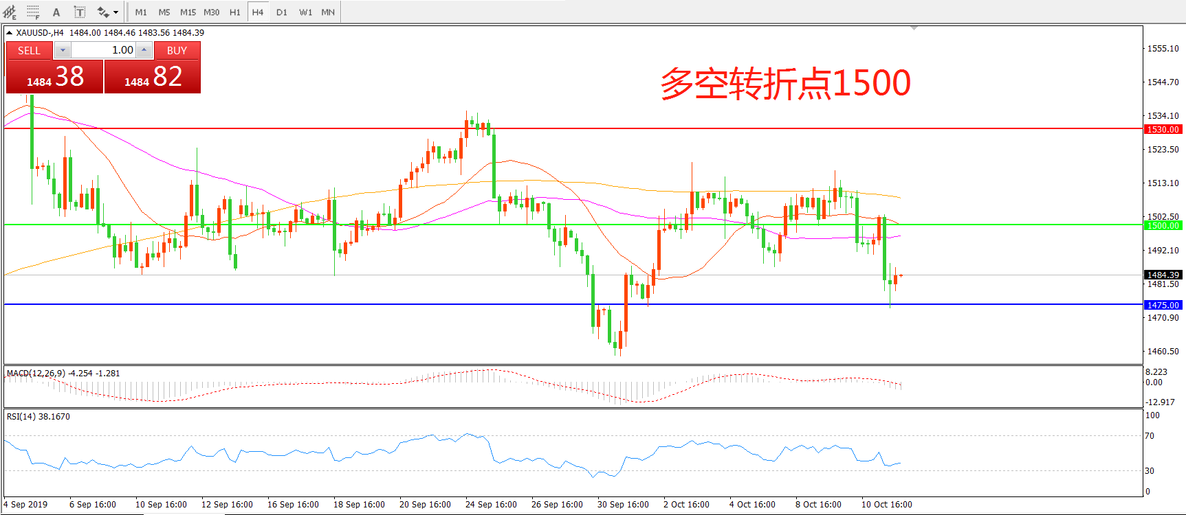 交易策略:在1500.00之下看跌,目标1475.00 1450.00