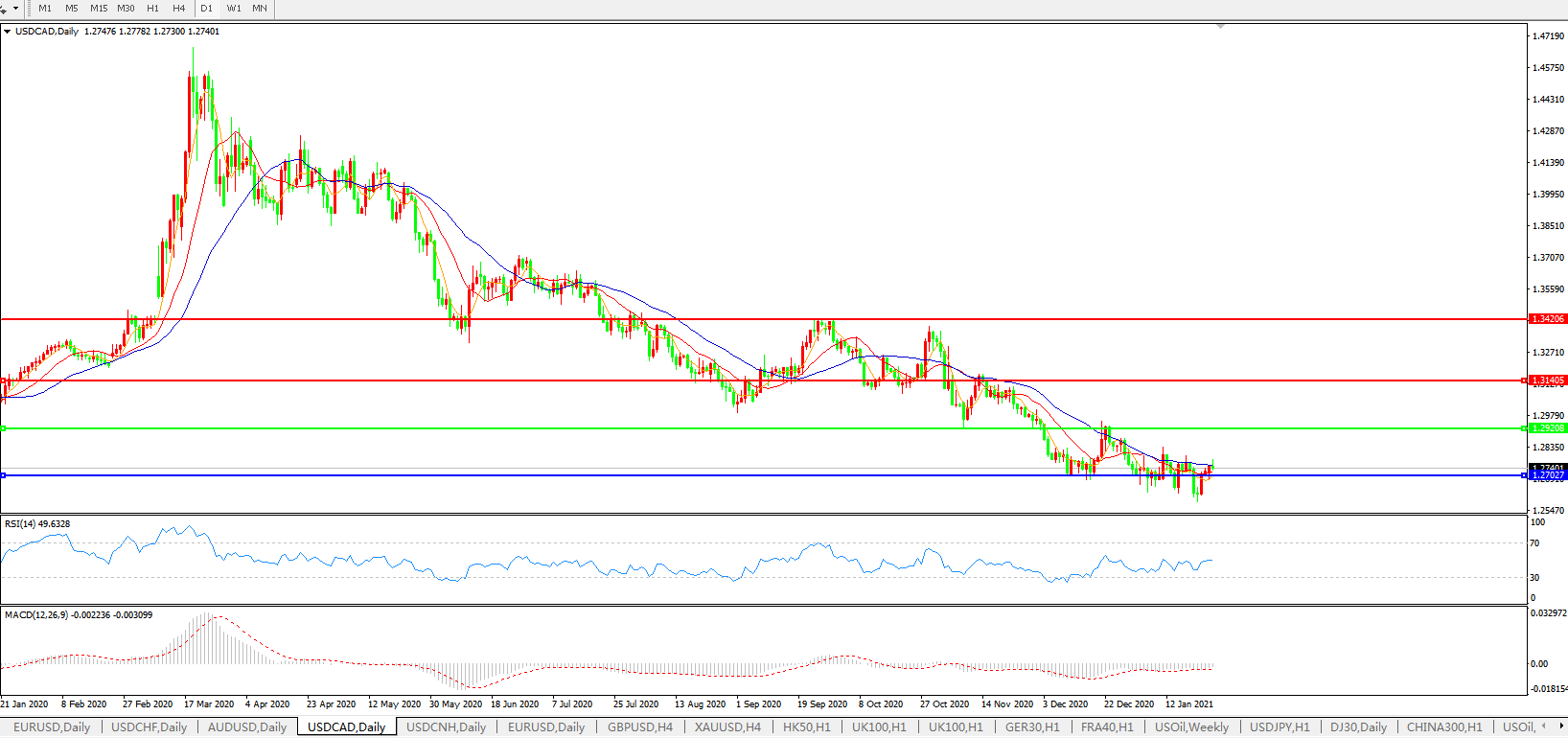 美元兑加元USDCAD 日线图: